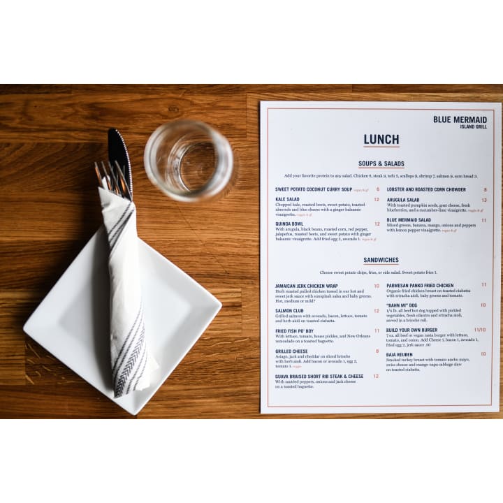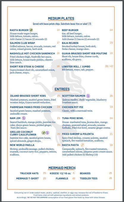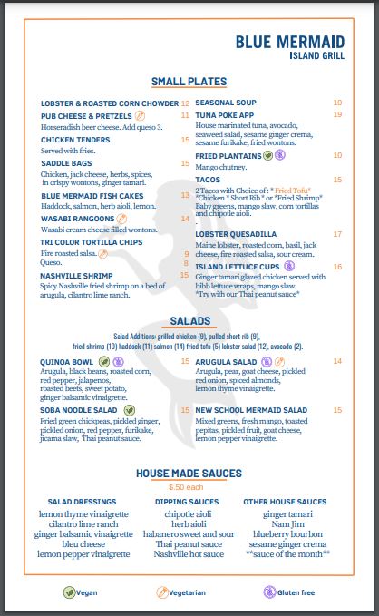 Welcome to Blue Mermaid Island Grill, a vibrant culinary gem nestled in Kittery, Maine. Our menu is a fresh embrace of Caribbean flavors, merging comfort with creativity. Dive into our enticing Weekly Specials, such as the succulent Chicken Thighs Entrée and tantalizing Jamaican Jerk Chicken Sandwich. For a lighter touch, indulge in our refreshing Arugula Salad or the hearty Quinoa Bowl, both perfect for the health-conscious diner.